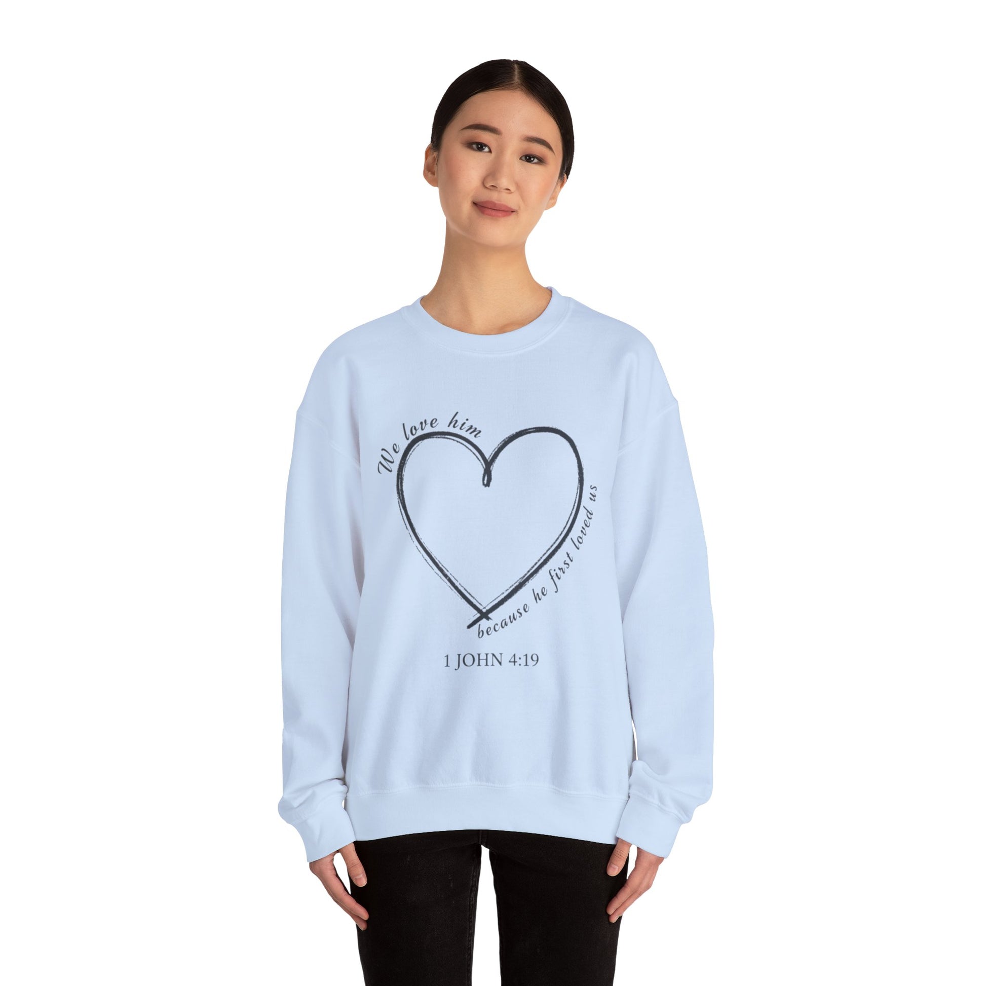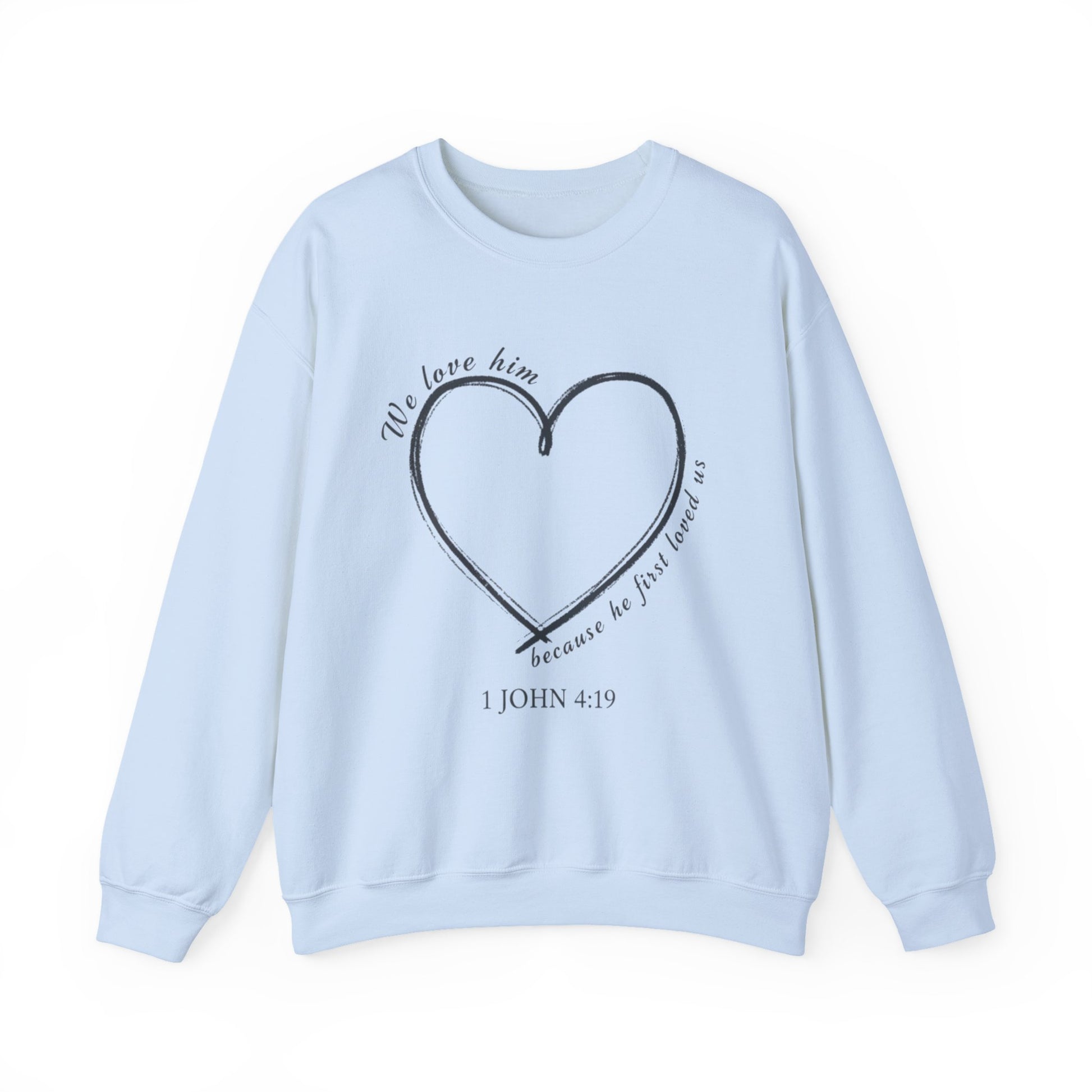 Heart Crewneck Sweatshirt | scripture 1 John 4:19